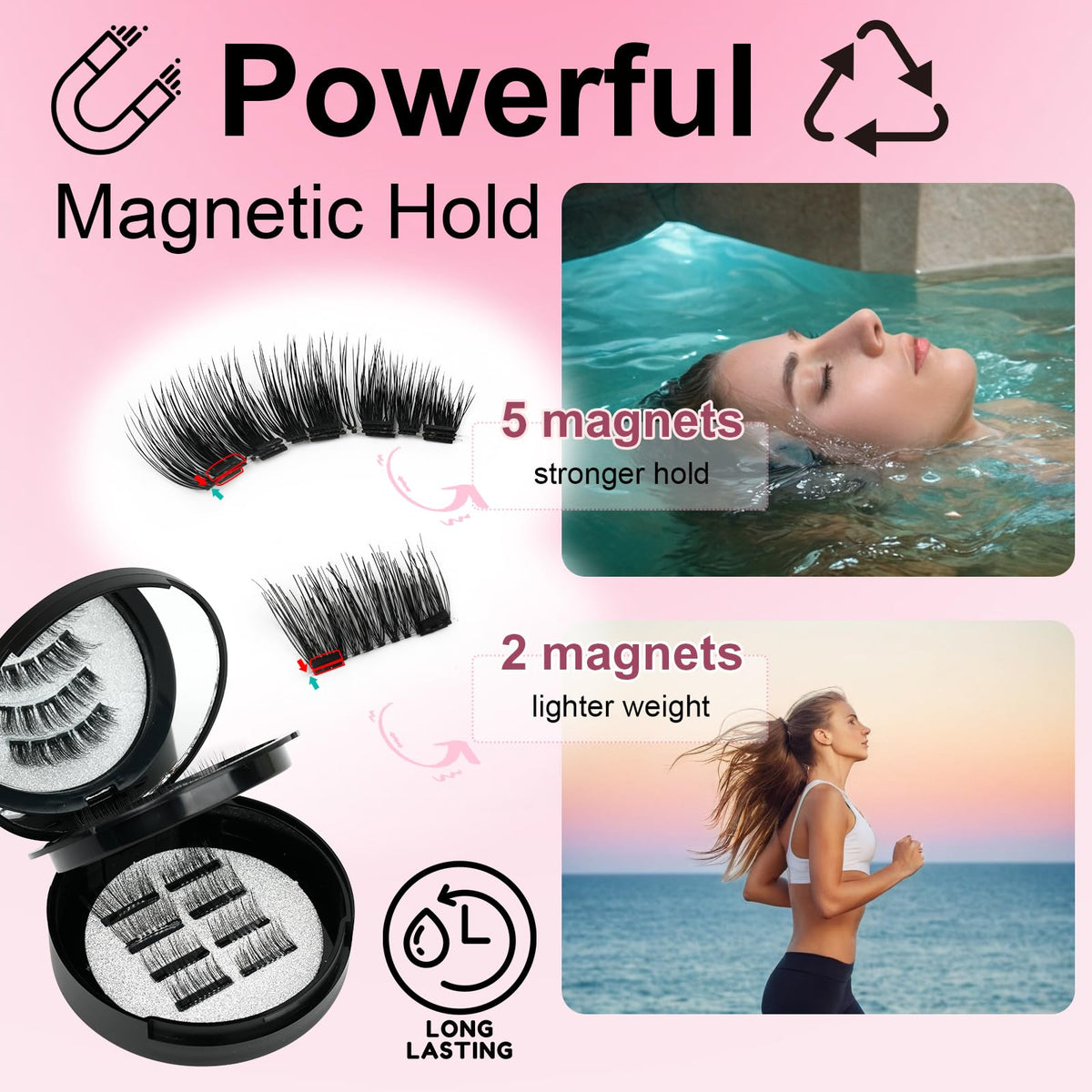 - Säker fästning: magnetiska ögonfransar använder 5 starka magneter för att sitta kvar utan kladdig lim.