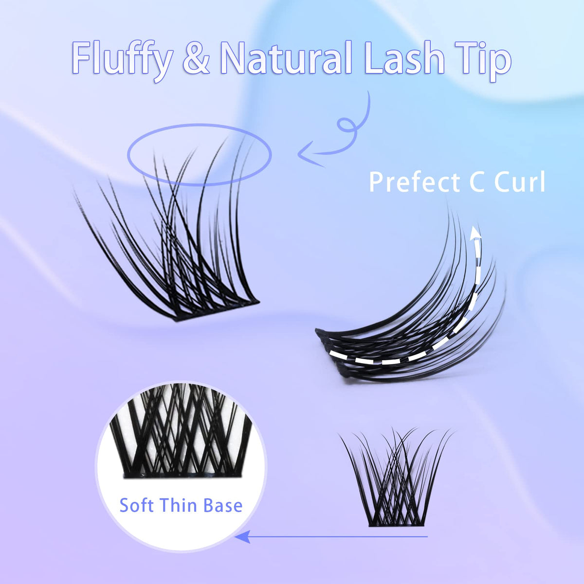- FALSKA ÖGONFRANSAR: Cluster lashes är utformade för att efterlikna ögonfransförlängningars utseende för att ge dig längre och fylligare fransar på det mest naturliga sättet. Utrustad med ett supertunt och bekvämt lash clusters band. Perfekt C curl, mjukt och lätt, håller i flera dagar när de används med professionellt lim.