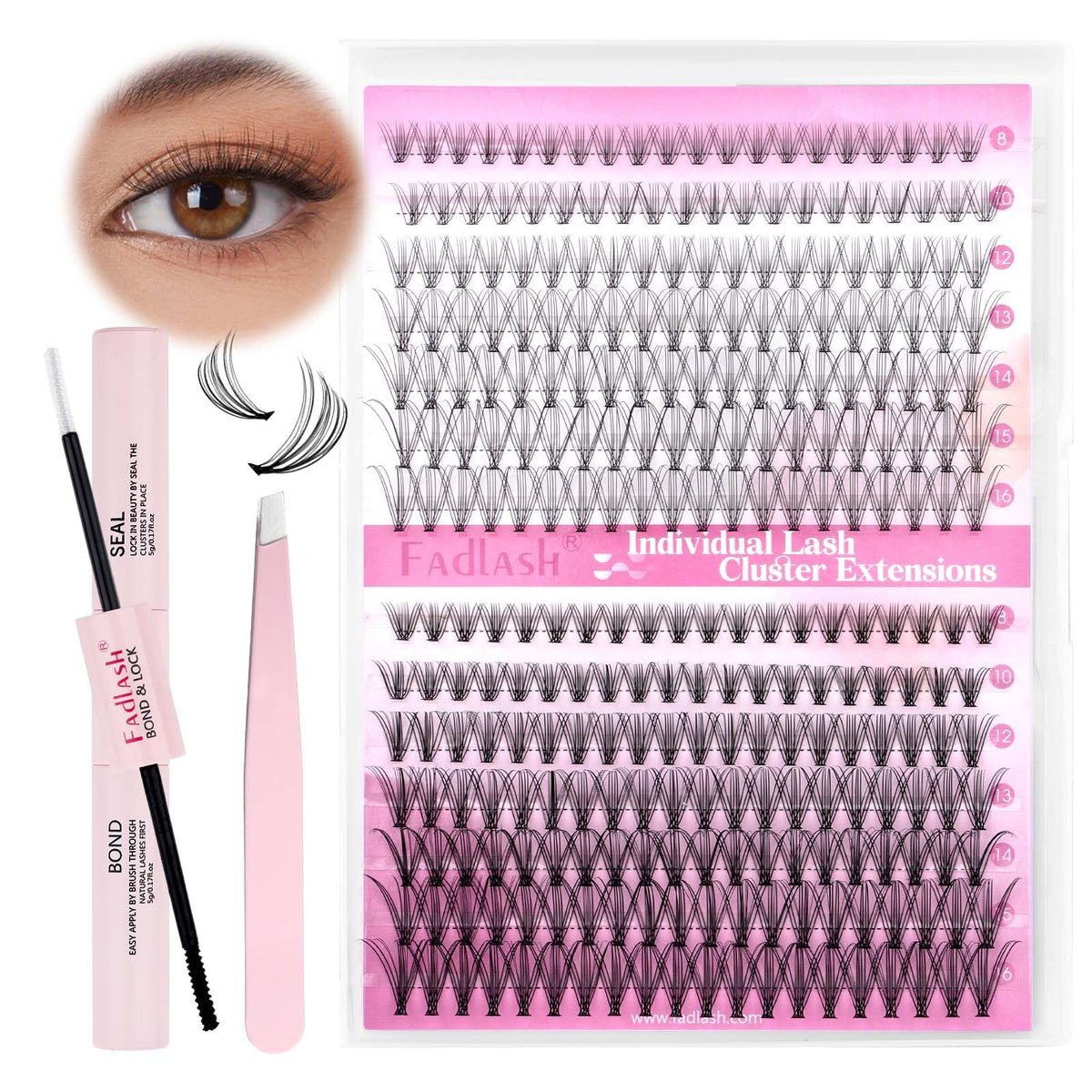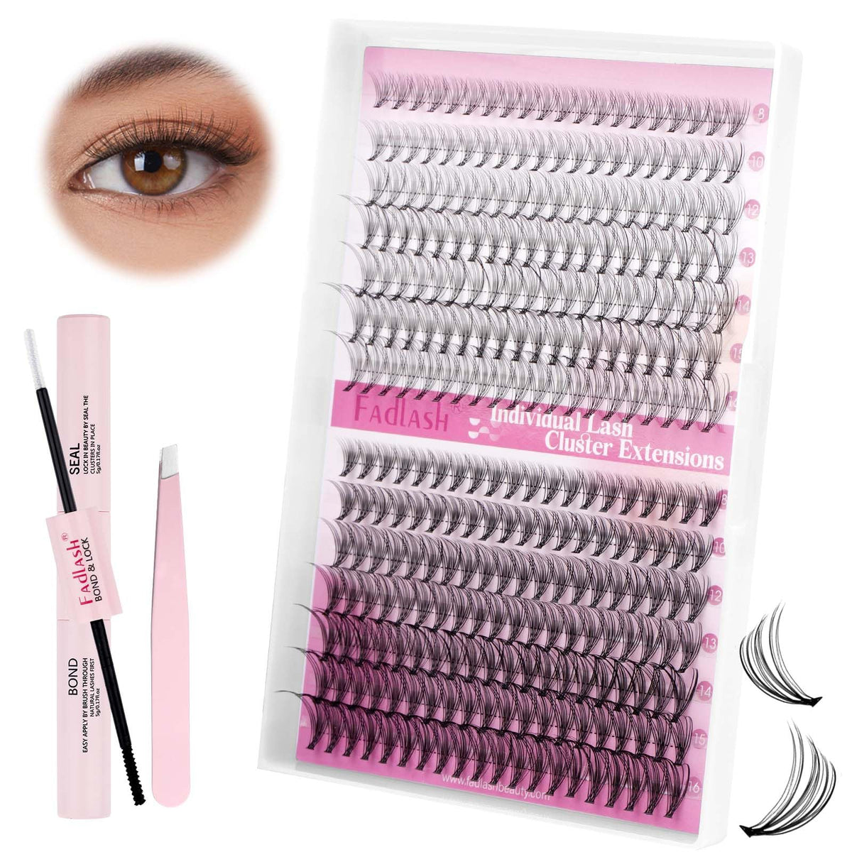 - 【DIY Lashes at Home】 Perfekt för hemmabruk, detta kit är perfekt för både nybörjare och erfarna fransartister.Cluster ögonfransar är mjuka att röra vid, bekväma att bära, silkeslen och glansig, skadar inte din hud och dina ögon, lätt att plocka upp från rötterna med pincett utan att falla isär.