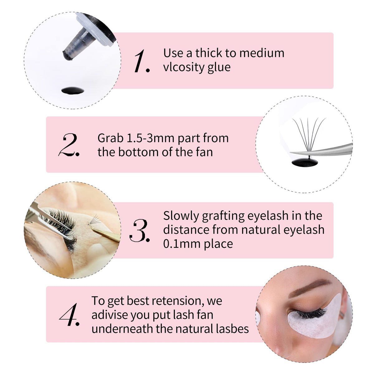 - Stabil Curl: Alla Pre Fanned Russian Volume Lashes värmde upp locken under tillverkningen för att få flexibiliteten som liknar en naturlig frans så att de håller den perfekta locken i cirka 12 månader och inte lätt att tappa locken.
