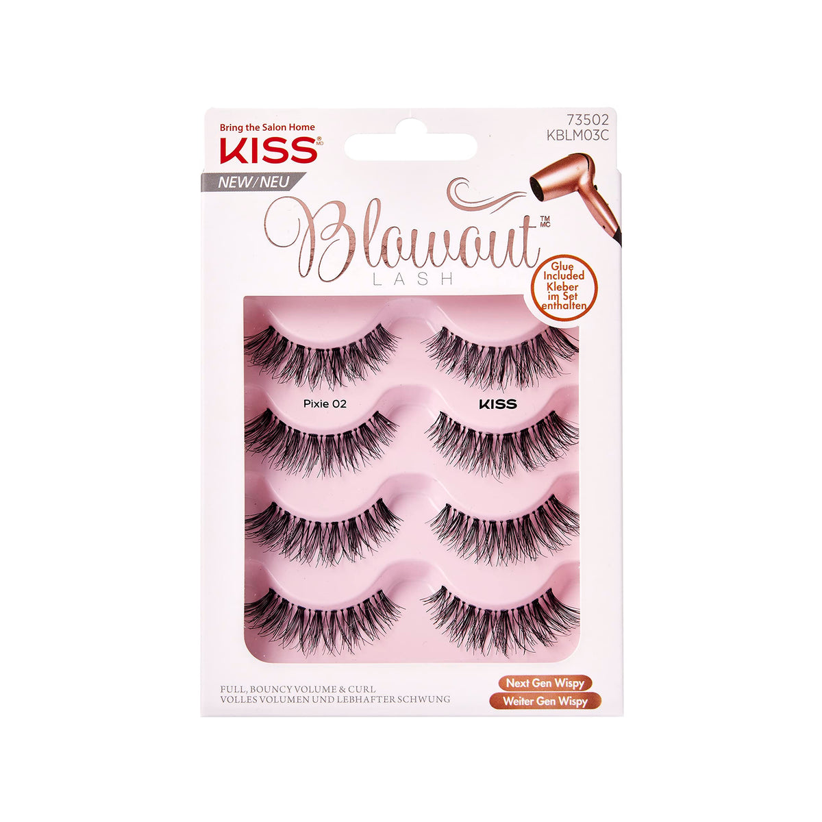 KISS Blowout Falska Ögonfransar, Svart, Paket med 4