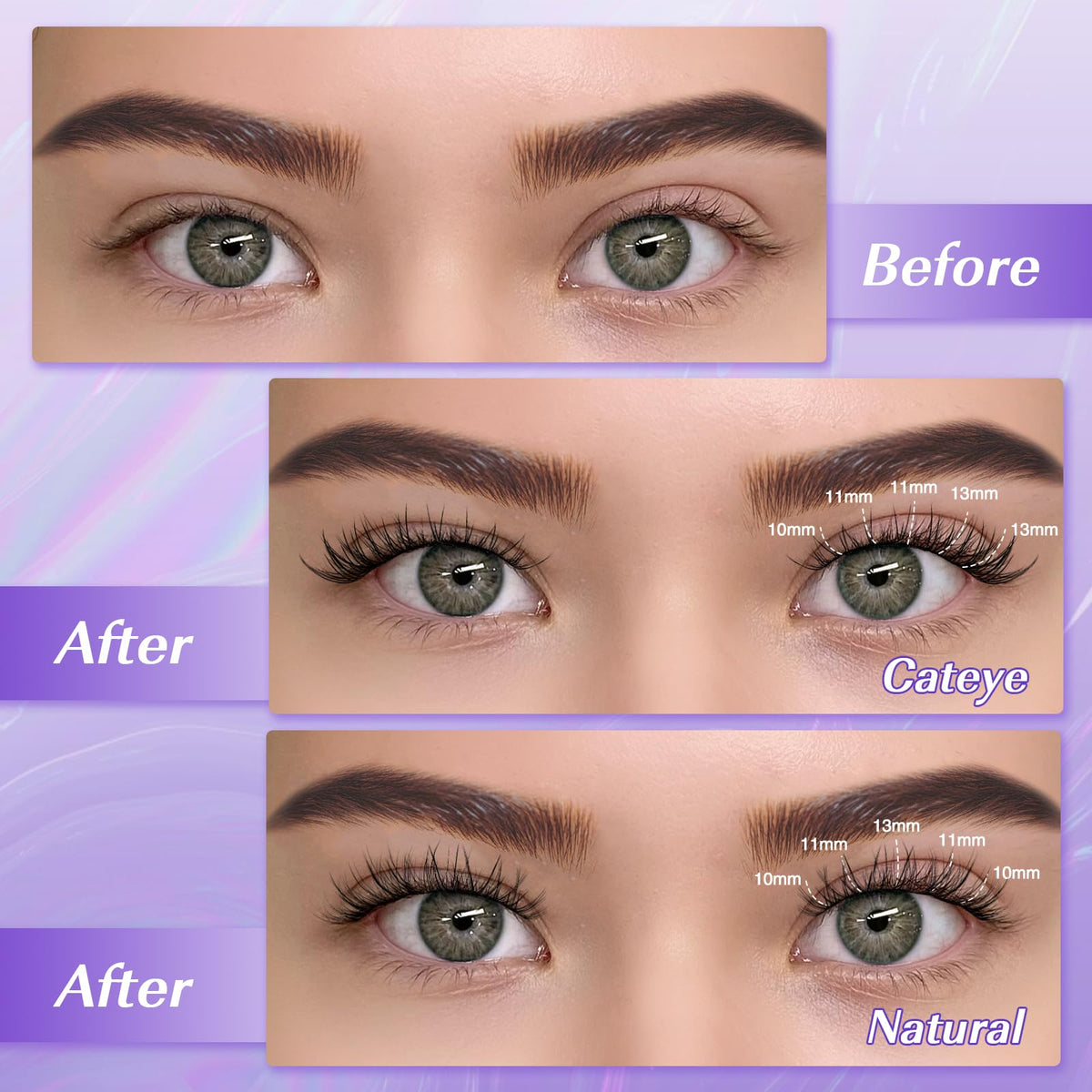 - Individuella fransar Lätta som en fjäder: Tillverkad av ultralätta PBT-fibrer, naturliga tatti-fransar garanterar komfort hela dagen; ögonfransar kluster är så lätta och bekväma att du glömmer att du bär fransar, så att du kan njuta av det vackra utan obehag eller tyngd på dina ögonlock