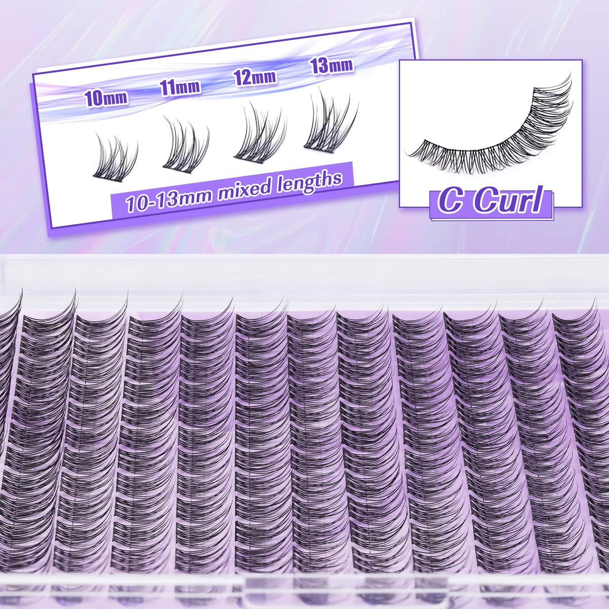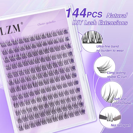 LZM Wispy Cluster Lashes - 144Pcs Lash Clusters 10-13mm Individual Eyelashes C Curl Cluster Lashes Natural Lashes Individual Cluster Tatti Lashes Thin Band Individual Lashes Eyelash Clusters (YW-C)